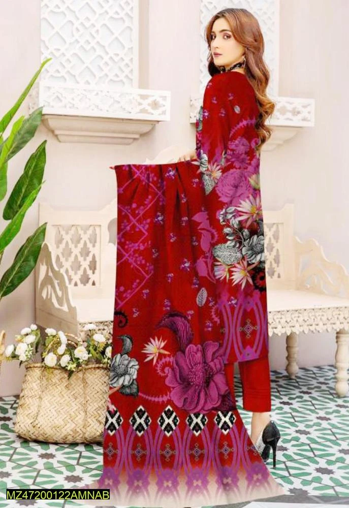 3 Pcs Women's Unstitched Dhanak Printed Suit