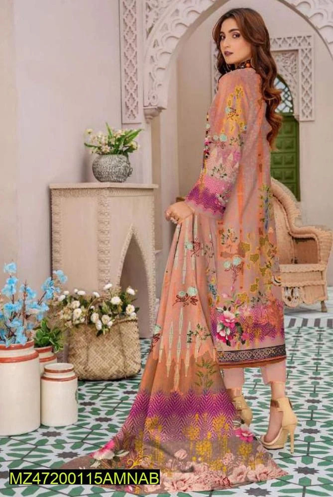 3 Pcs Women's Unstitched Dhanak Printed Suit