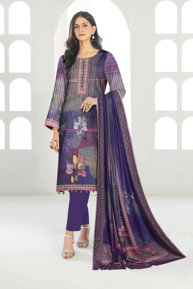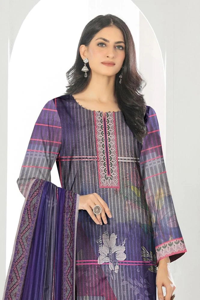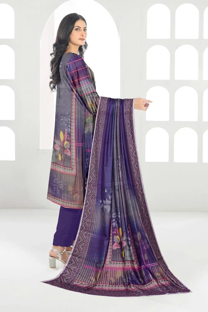 3 Pcs Women's Unstitched Dhanak Printed Suit