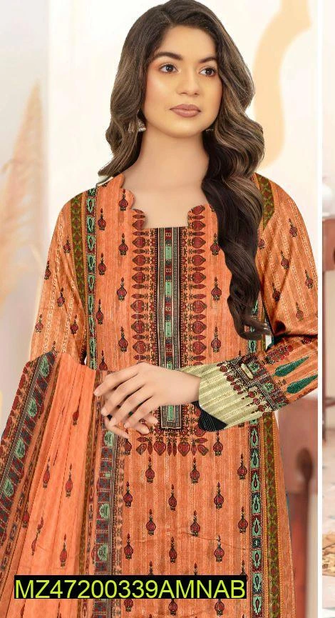 3 Pcs Womens's Unstitched Lawn Printed Suit
