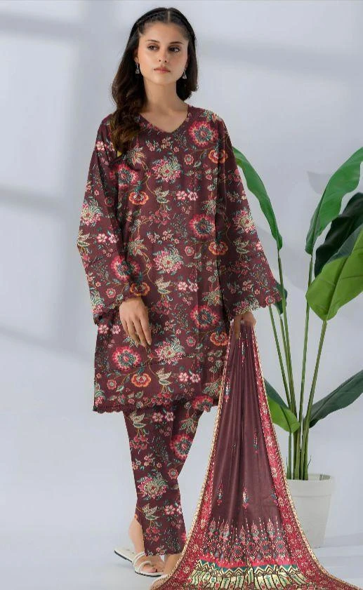 3 Pcs Womens's Unstitched Lawn Printed Suit