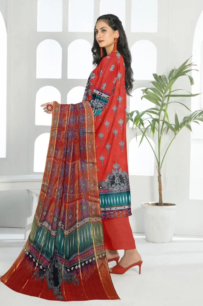 3 Pcs Womens's Unstitched Lawn Printed Suit