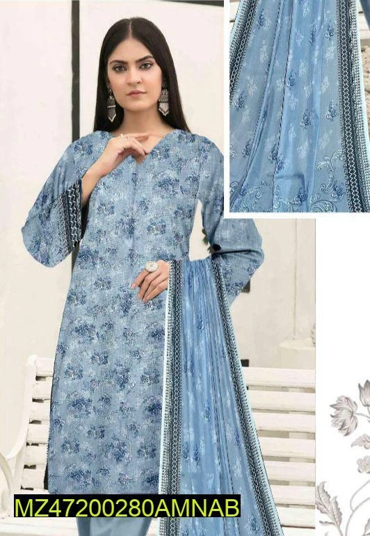 3 Pcs Womens's Unstitched Lawn Printed Suit