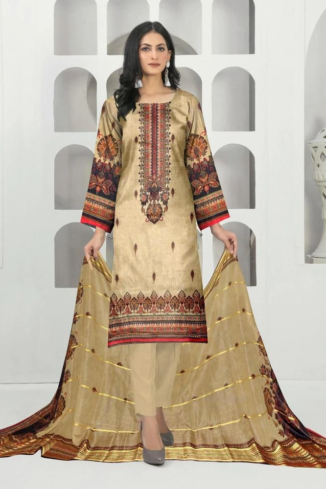 3 Pcs Womens's Unstitched Lawn Printed Suit