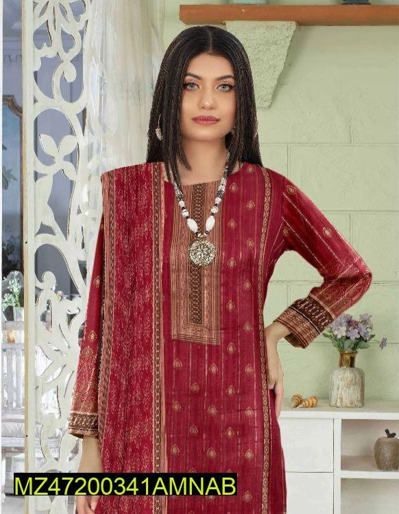 3 Pcs Womens's Unstitched Lawn Printed Suit
