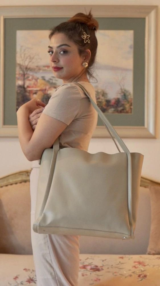 Experience elegance and convenience with this spacious synthetic leather tote bag.