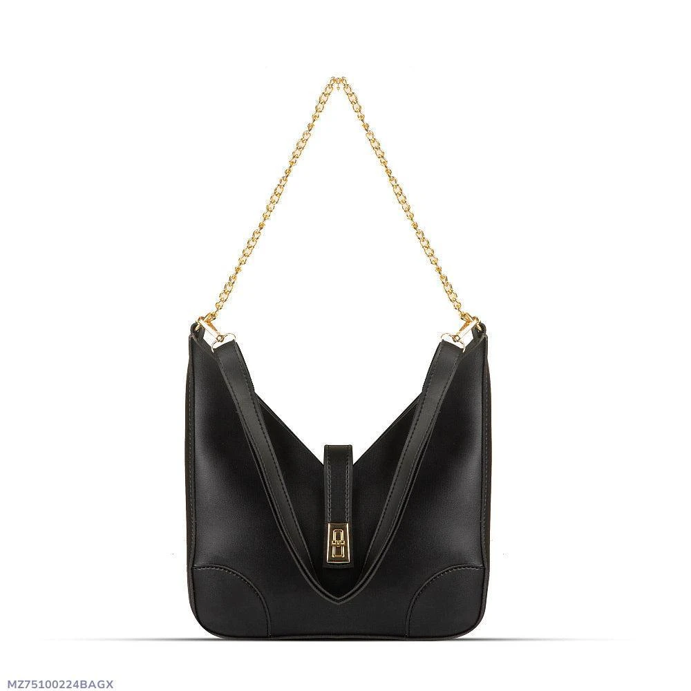 Plain PU Leather Shoulder Bag with Front Lock
