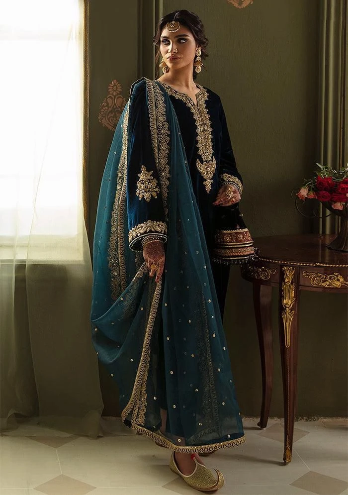 Step into timeless elegance with the latest Baroque Velvet Collection! This exquisite outfit combines the luxury of micro velvet with intricate craftsmanship, making it the perfect statement piece for special occasions.