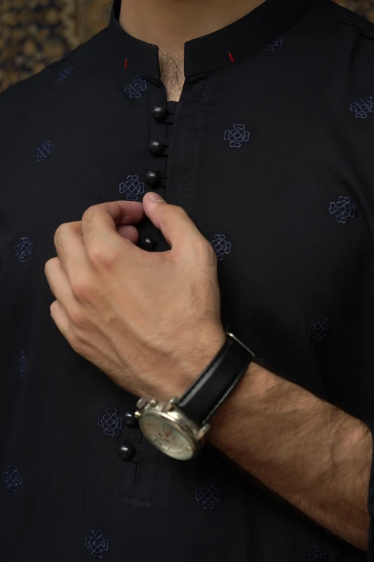 Collar: Mandarin, Sleeves: Full Sleeve, Fit Type: Regular Fit, Length: Knee Length Kurta.