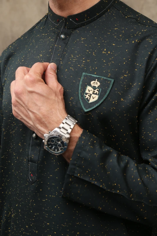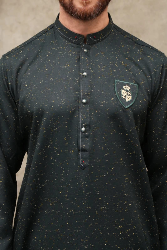 DARK GREEN DOTTED MEN'S COTTON KURTA