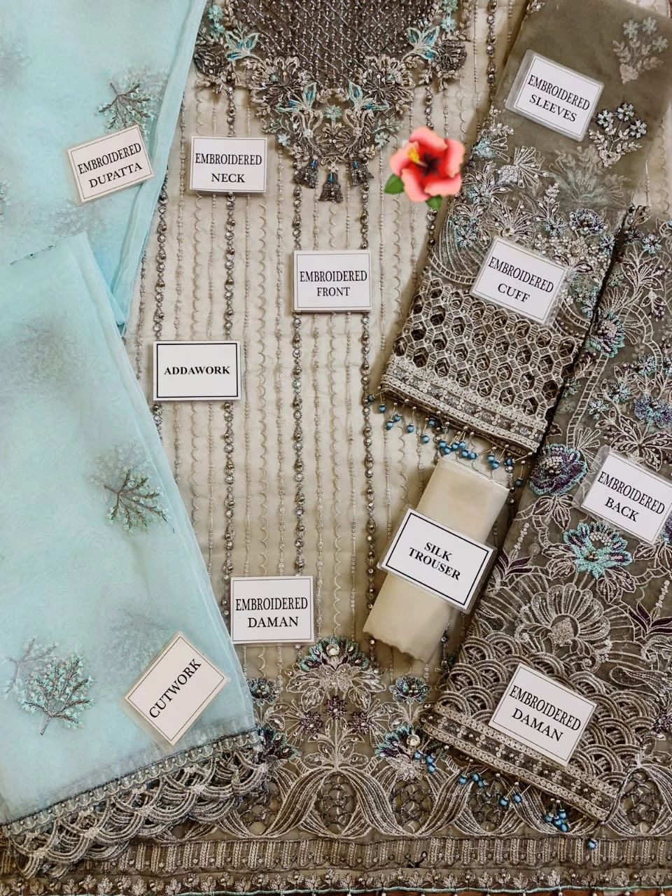- Dupatta: Organza heavy embroidery, 2-side cutwork pallu attached
