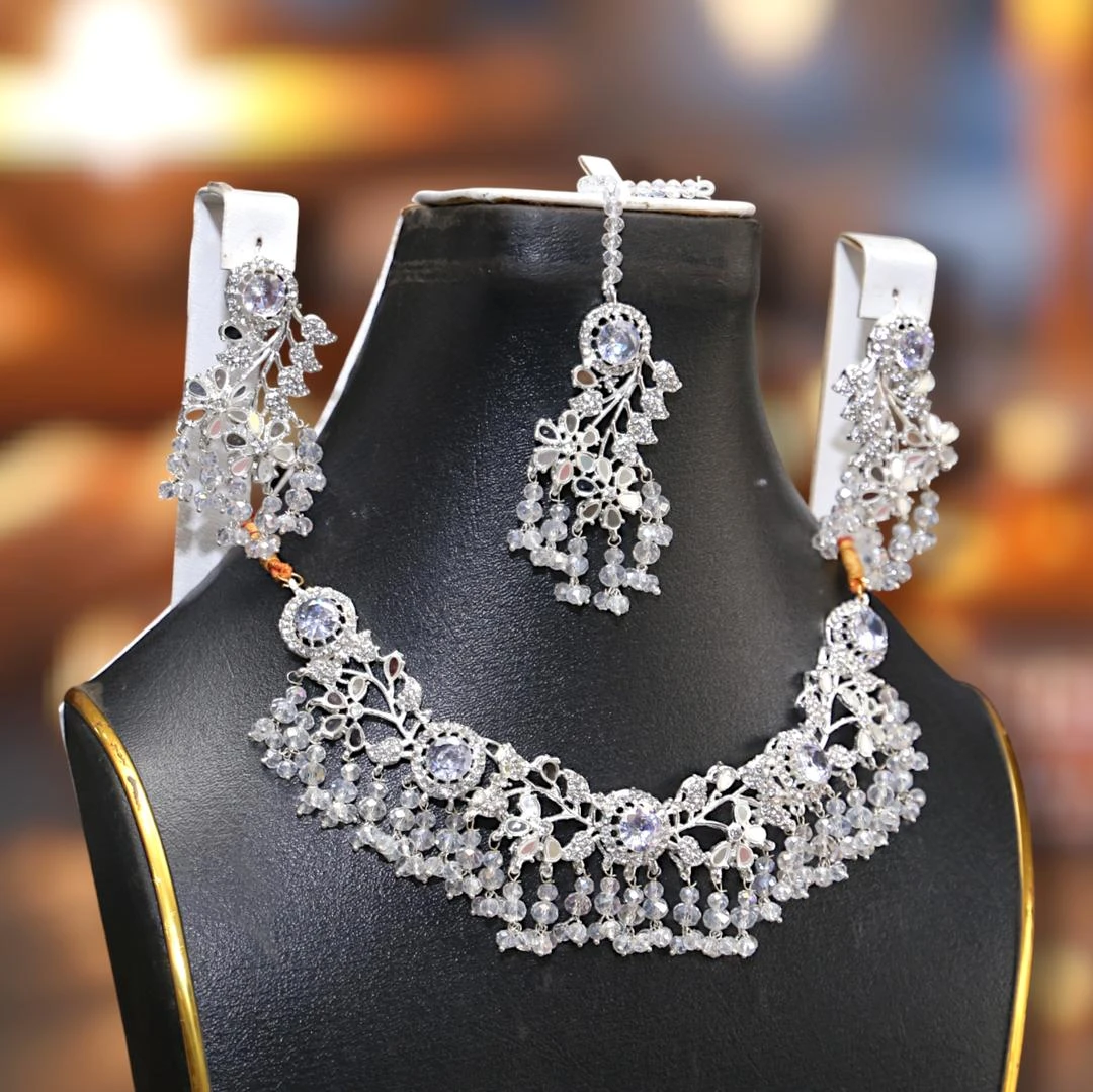 Silver Plated Crystal Bridal Necklace - Timeless Elegance