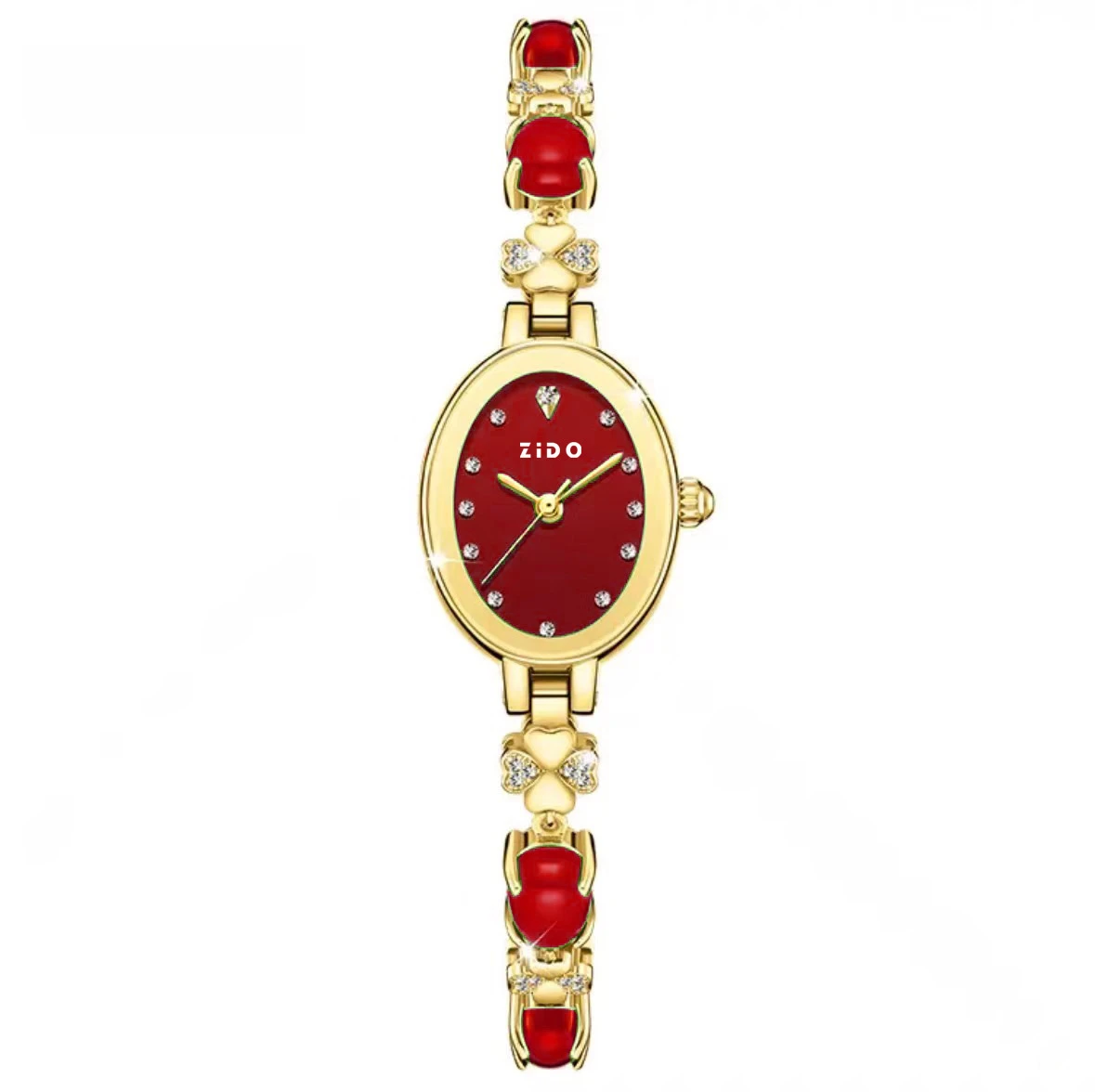 Keywords: luxury women's watch, quartz watch, diamond-encrusted watch, waterproof watch, elegant watch, fashionable watch, oval watch, ZIDO brand.