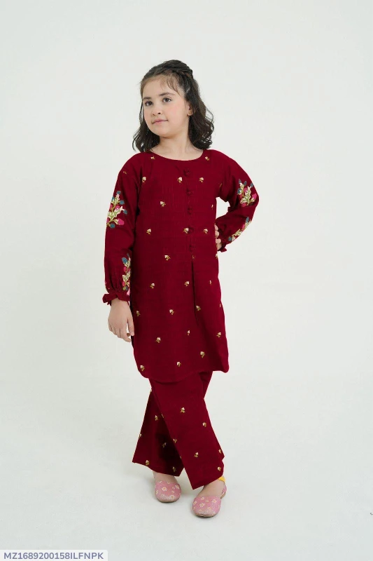 Front Stitch Button With Embroidered Shirt And Emb Flapper Kids 2Pcs