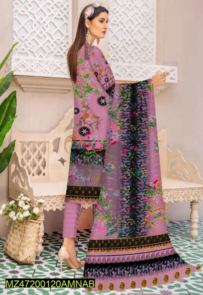 3 Pcs Women's Unstitched Dhanak Printed Suit