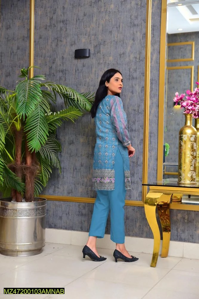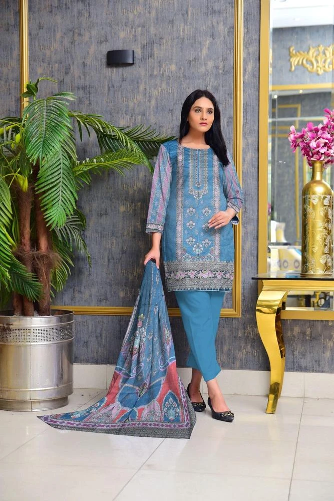 3 Pcs Women's Unstitched Dhanak Printed Suit