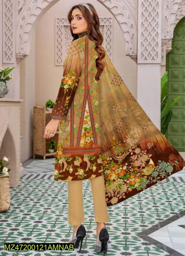 3 Pcs Women's Unstitched Dhanak Printed Suit