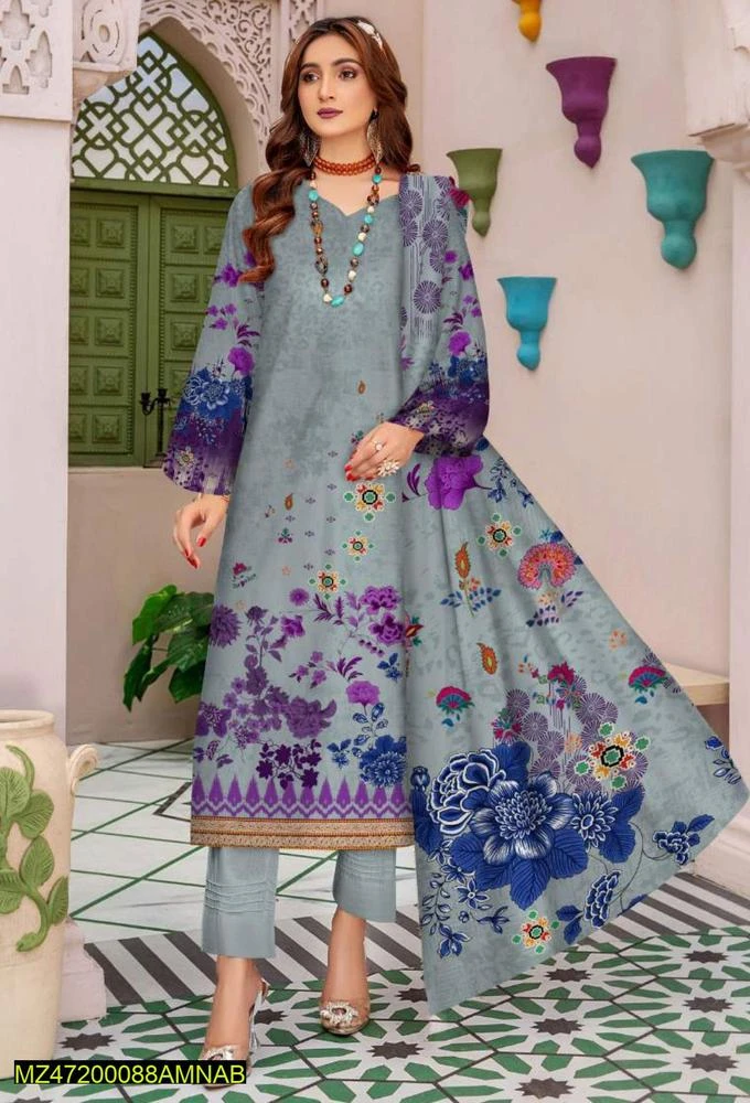 3 Pcs Women's Unstitched Marina Printed Suit