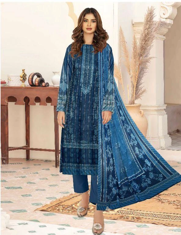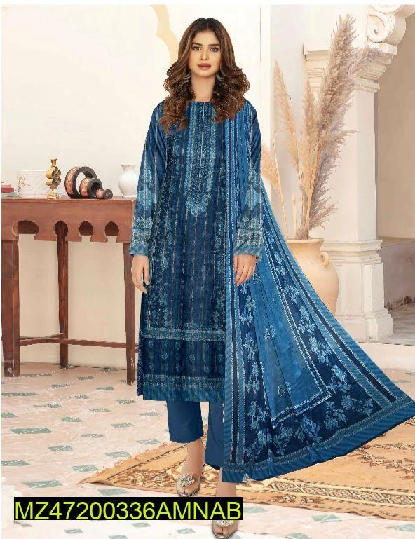 3 Pcs Womens's Unstitched Lawn Printed Suit