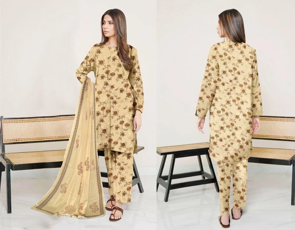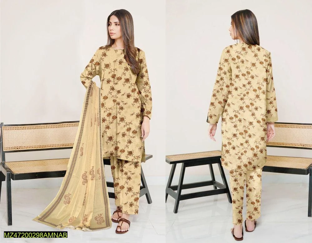 3 Pcs Womens's Unstitched Lawn Printed Suit