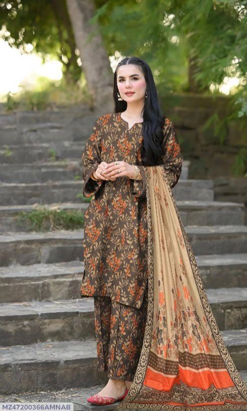 3 Pcs Womens's Unstitched Lawn Printed Suit