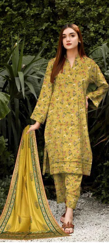 3 Pcs Womens's Unstitched Lawn Printed Suit