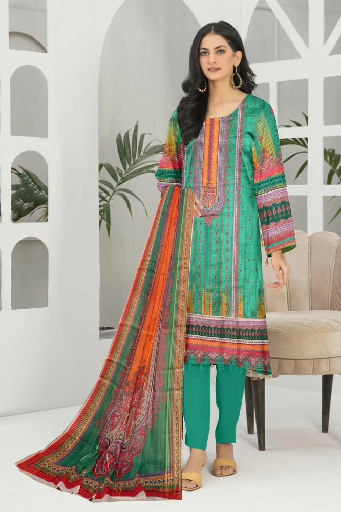 3 Pcs Womens's Unstitched Lawn Printed Suit