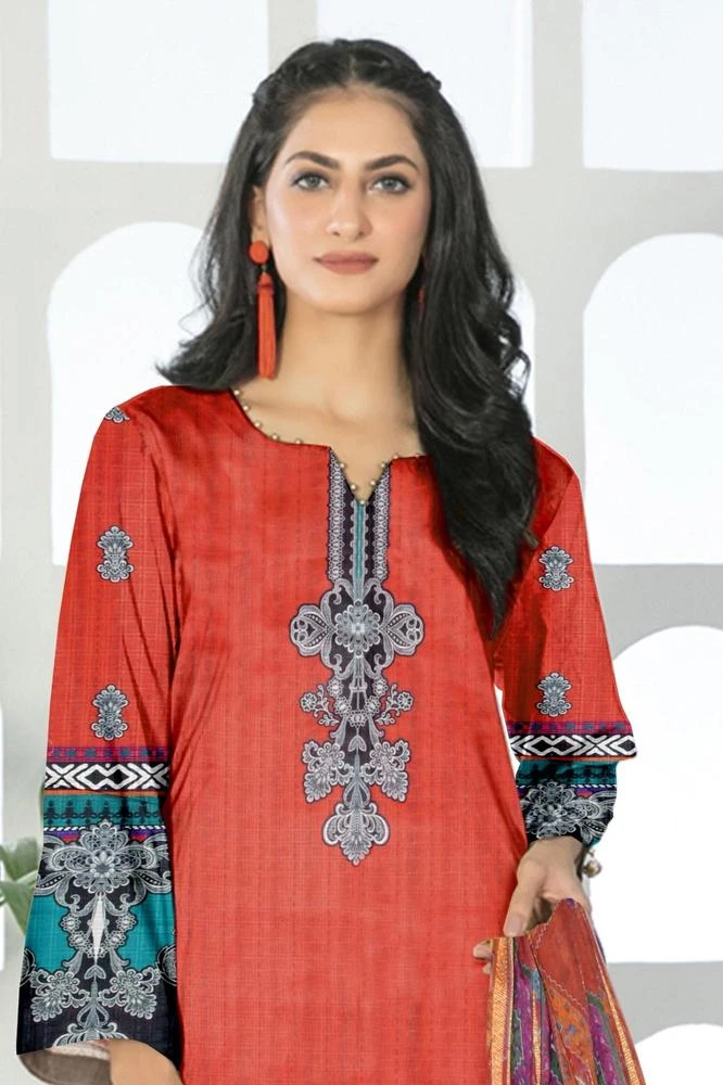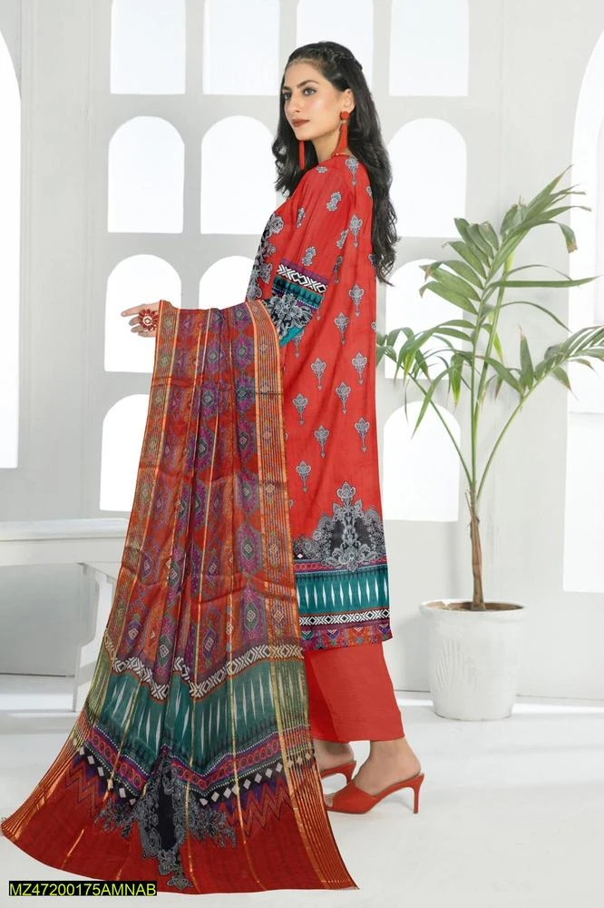 3 Pcs Womens's Unstitched Lawn Printed Suit
