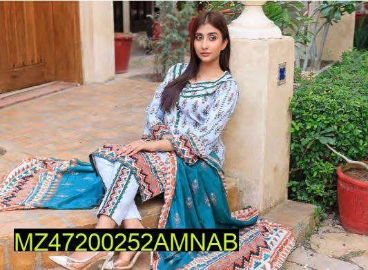 3 Pcs Womens's Unstitched Lawn Printed Suit