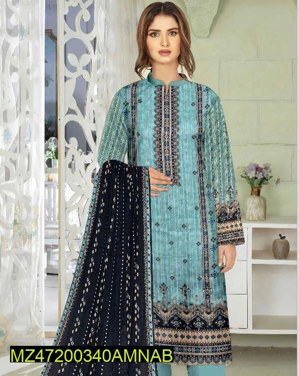 3 Pcs Womens's Unstitched Lawn Printed Suit