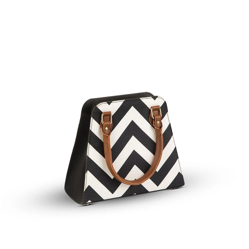 Elevate your daily style with this chic canvas-print PU leather handbag.