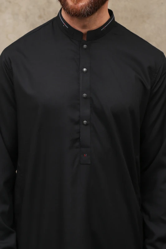 BLACK WASH & WEAR MEN'S SHALWAR KAMEEZ WITH BLACK BUTTONS