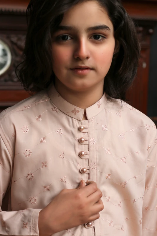 CREAM KID'S EMBROIDED KURTA