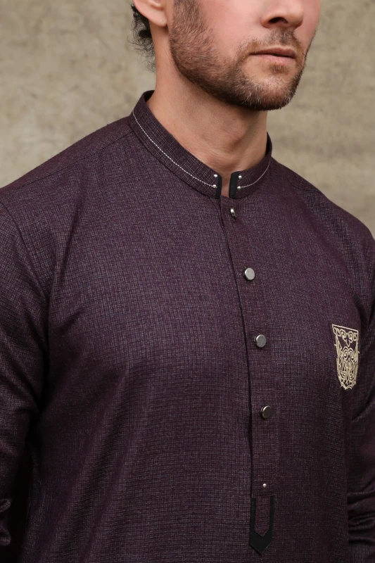 DARK PURPLE PATCHED MEN'S KURTA