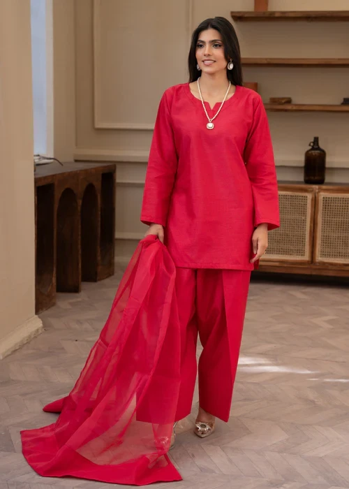 Turn heads effortlessly in this elegant Farshi Shalwar 001 – Shocking Pink 3-Piece Kurta Set by Momin Online, specially crafted for women who appreciate the timeless charm of Eastern fashion. Designed for both daily wear and graceful moments, this outfit blends contemporary cuts with traditional appeal.