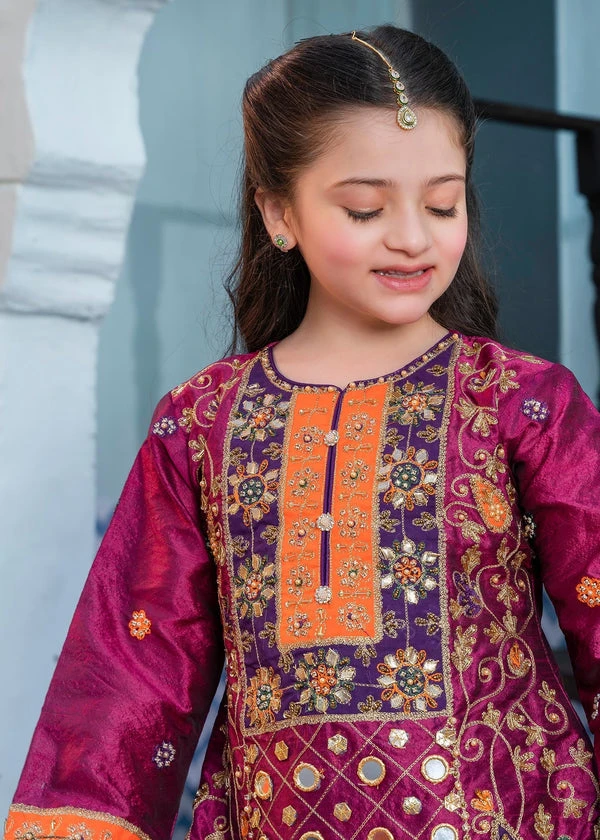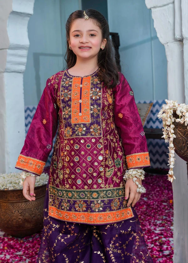 This stunning eastern outfit is designed for little girls, perfect for formal occasions. The 3-piece ensemble includes a top, bottom, and dupatta.