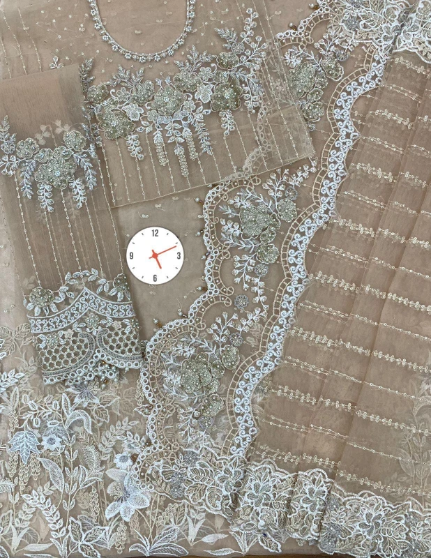Fully Heavy Embroidered Net Front or Back With Cut Work Border