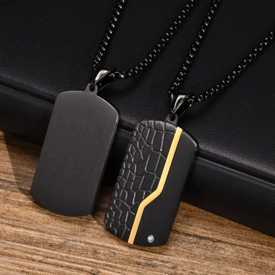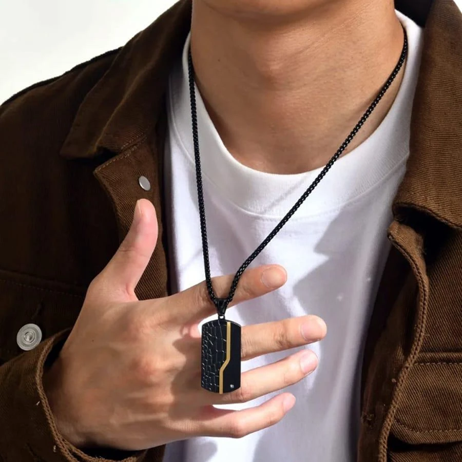 Keyword Highlights: Men's stainless steel necklace, black necklace, modern men's jewelry, sleek necklace design, durable necklace.