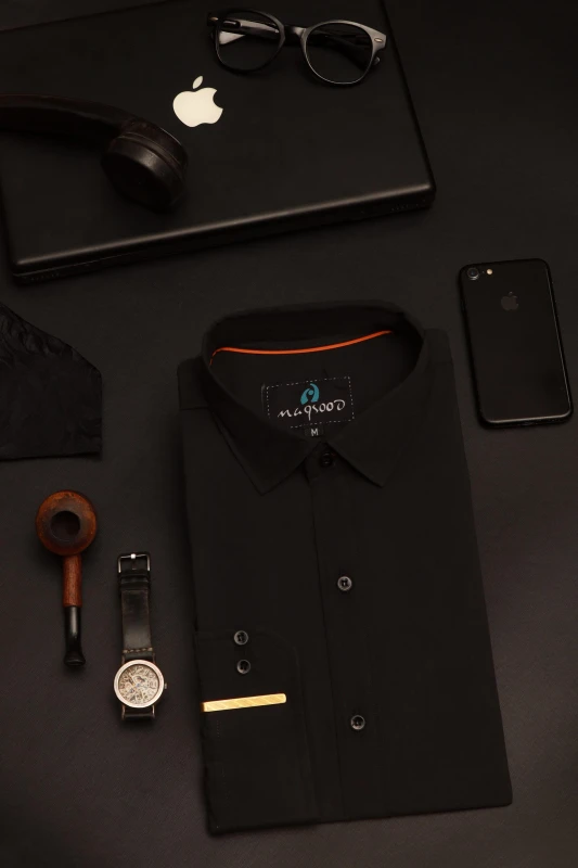 MEN'S PLAIN BLACK COTTON CASUAL SHIRT