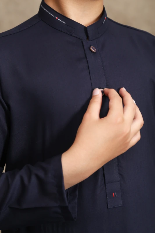 NAVY BLUE KID'S WASH & WEAR SHALWAR KAMEEZ WITH GOLDEN BUTTONS