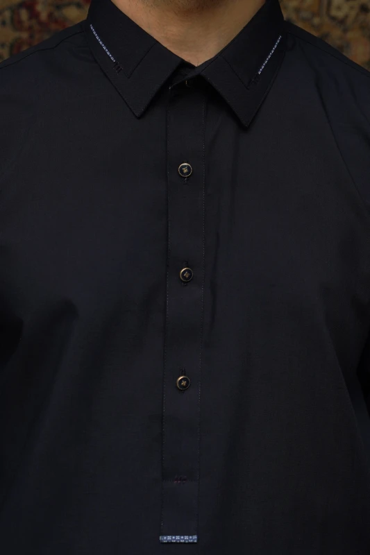 NAVY BLUE MEN'S WASH & WEAR SHALWAR KAMEEZ WITH COLLAR