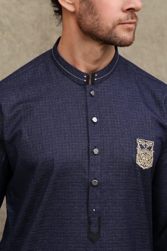 NAVY BLUE PATCHED WASH & WEAR MEN'S KURTA
