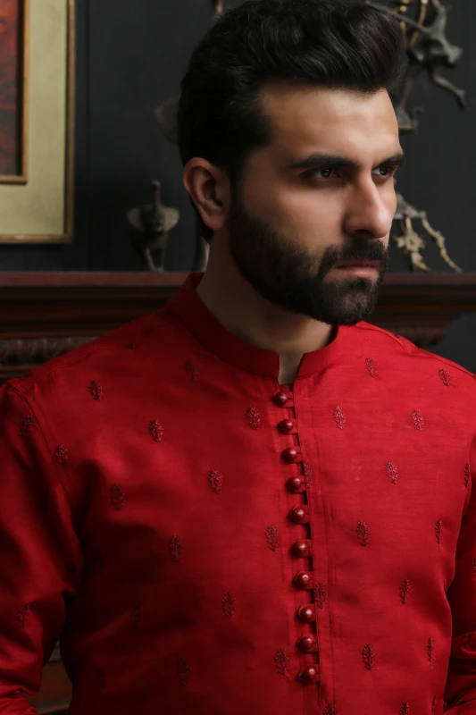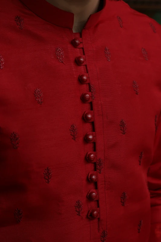 RED EMBROIDED MEN'S COTTON KURTA