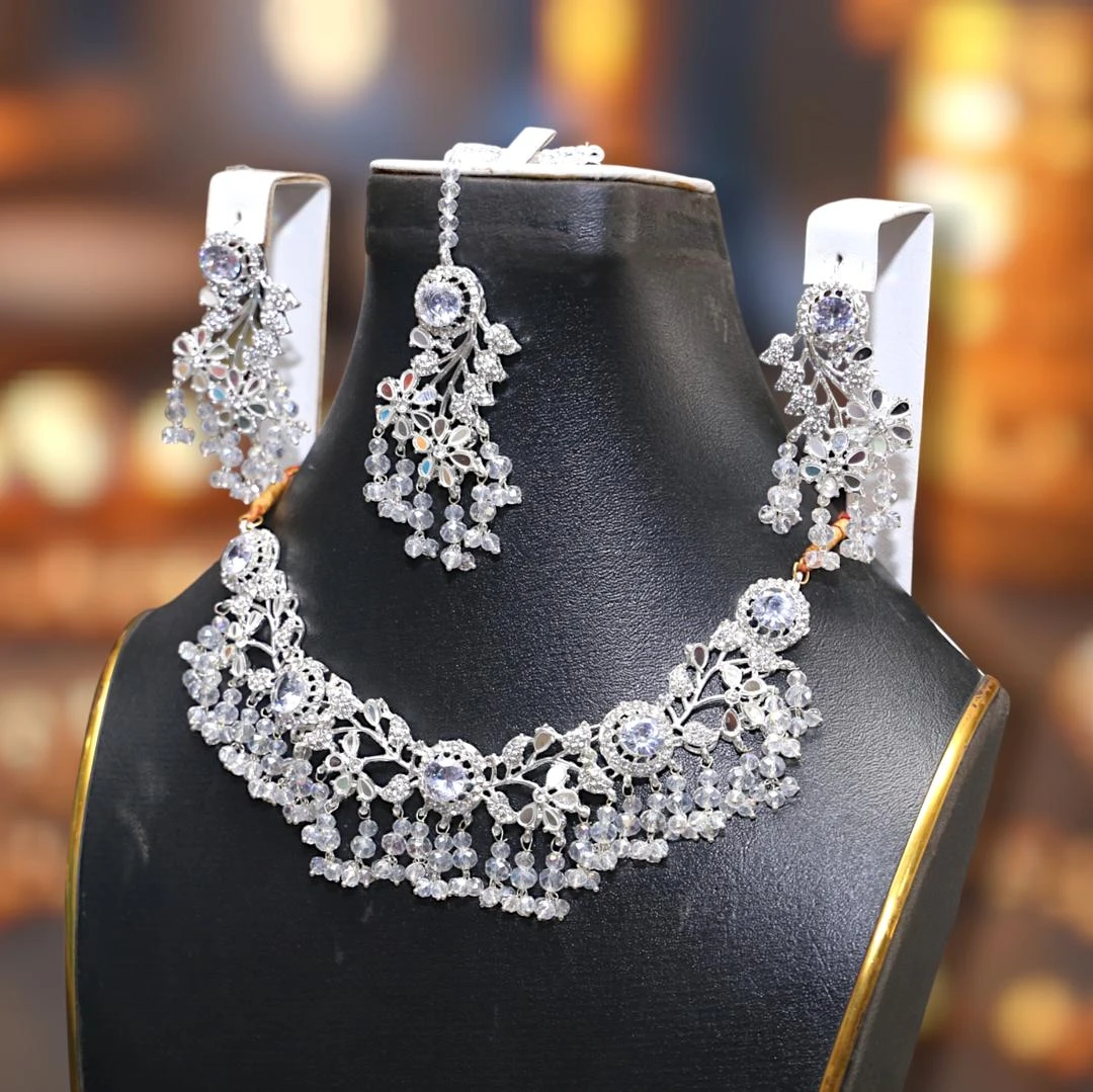 Silver Plated Crystal Bridal Necklace - Timeless Elegance