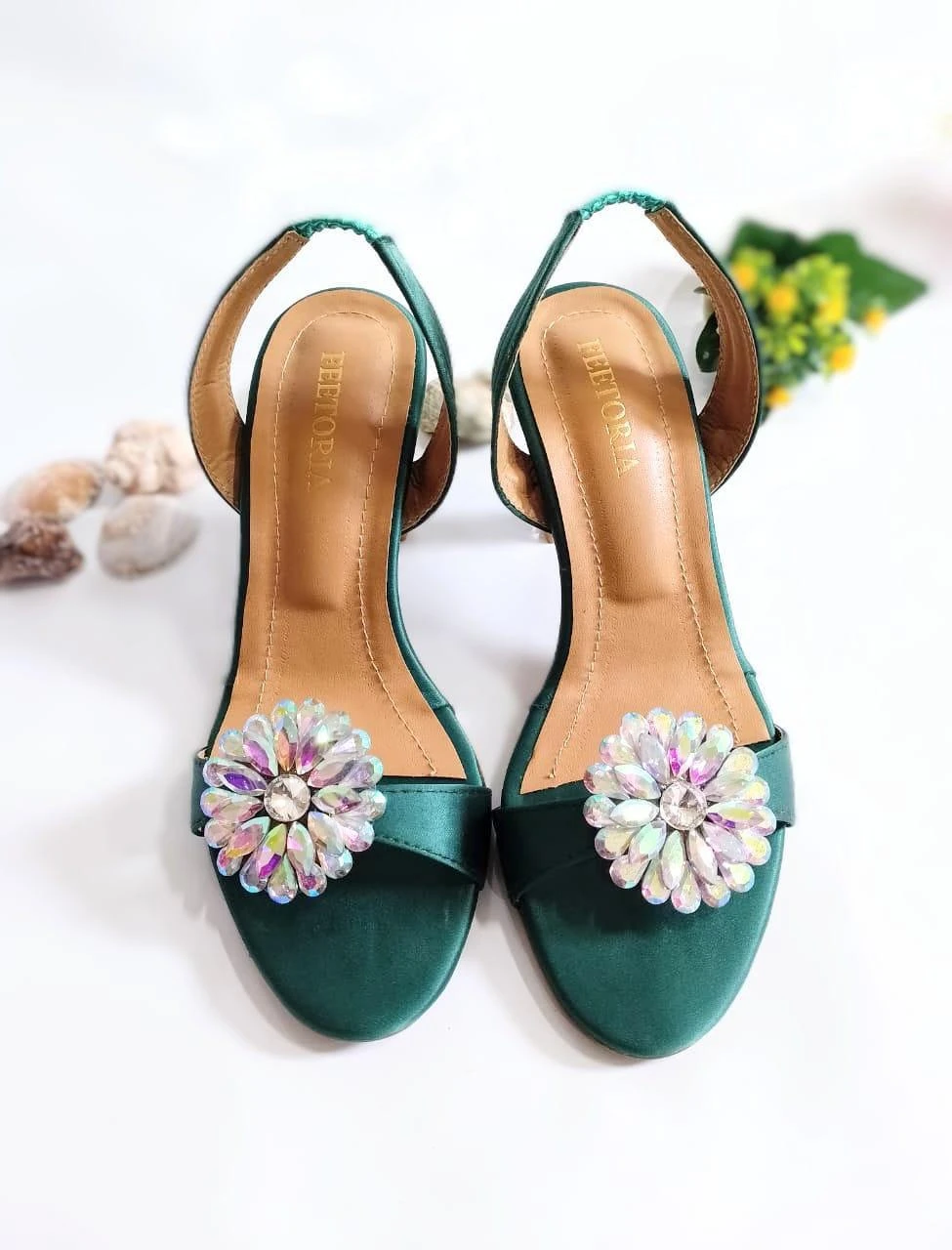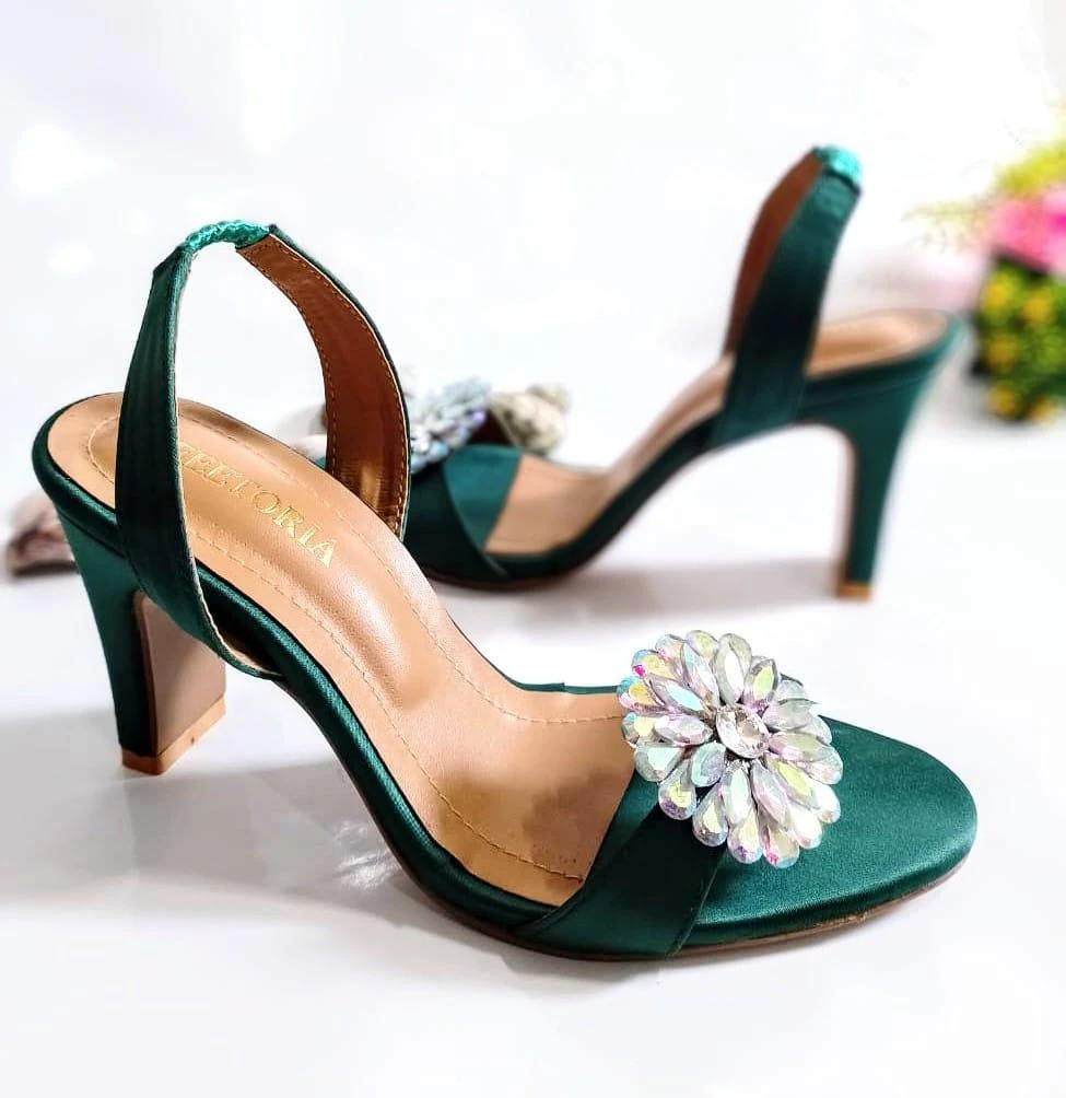 Keyword Highlights: Women's block heels, synthetic leather heels, fancy heels, formal heels, comfortable heels, green heels.